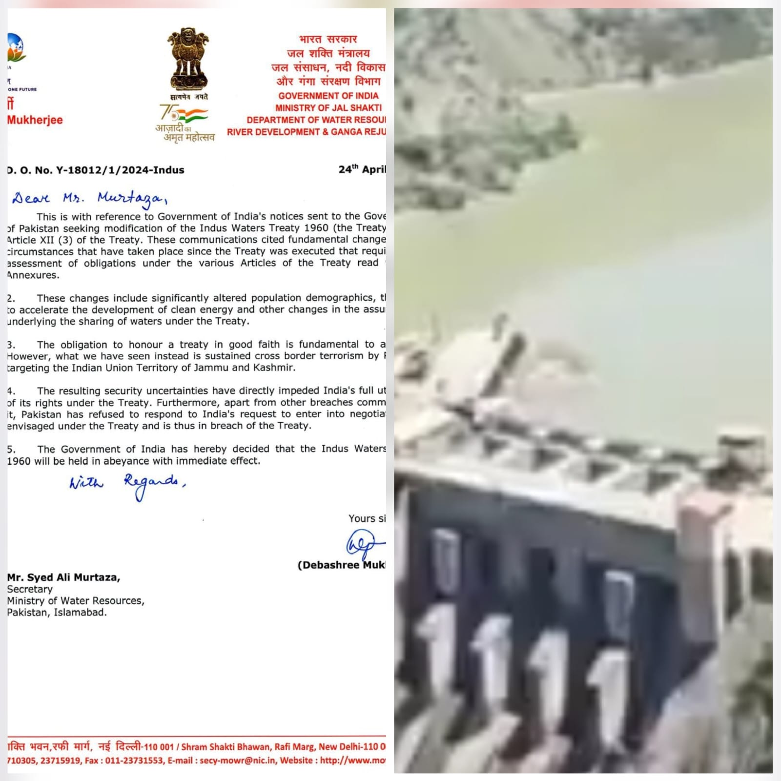 सबसे पहले भारत में जल शक्ति सचिव के द्वारा पाकिस्तानी जल संसाधन मंत्रालय को लिखे गए पत्र को जान लीजिए.... पत्र में लिखा गया है कि यह संधि अच्छे संदर्भ में की गई थी। लेकिन अच्छे रिश्तों के बिना इसे बनाए नहीं रखा जा सकता ।